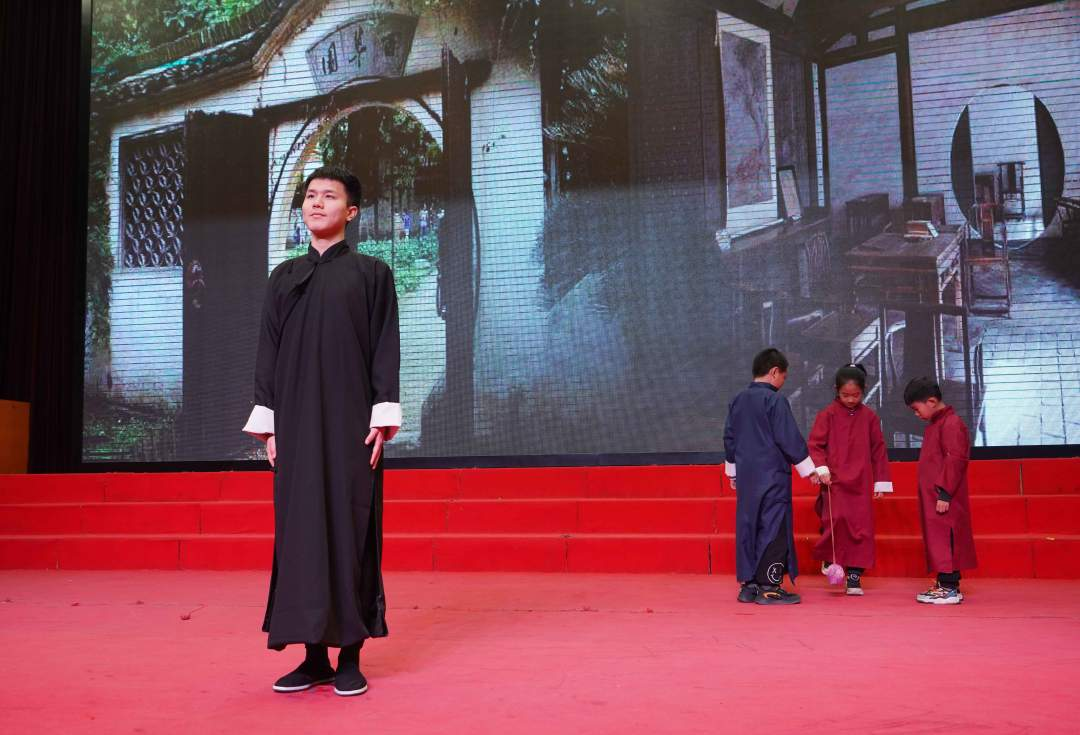 1月26日,河北省保定市西高庄村文化活动中心,正在表演录制《读书·强国》穿越朗诵节目。